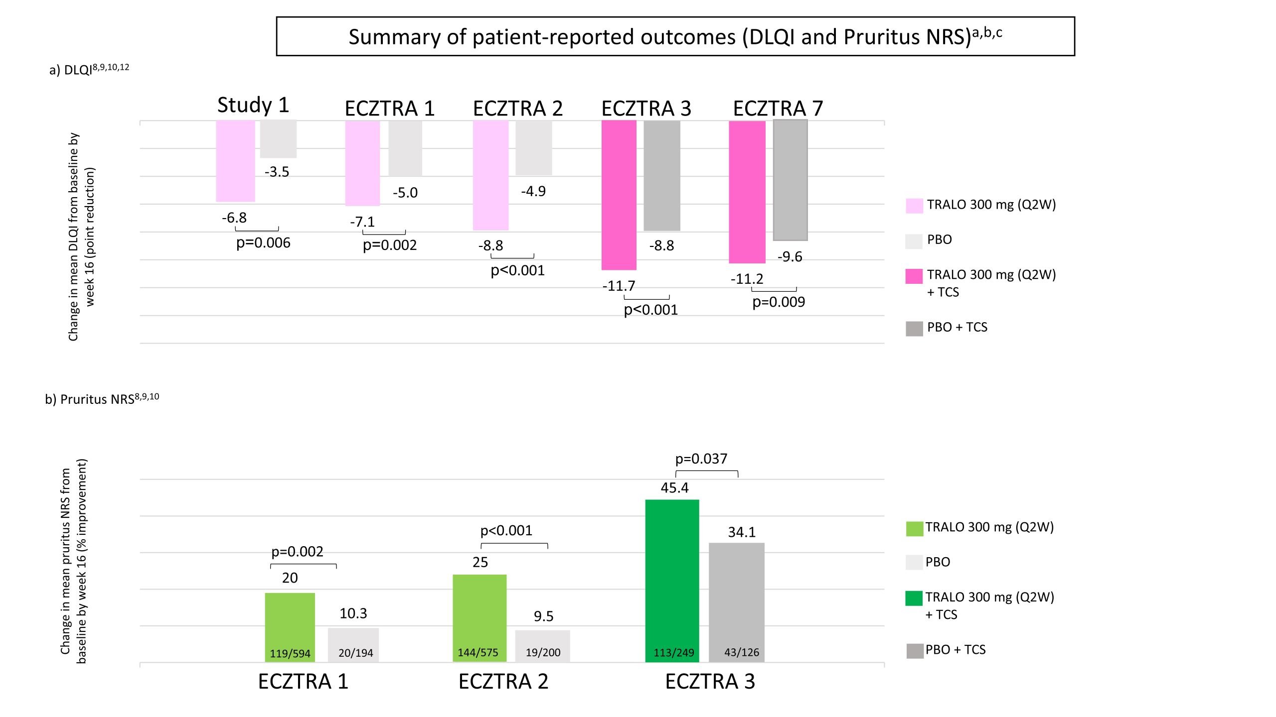 cChange in mean DLQI (point reduction) and pruritus NRS (% improvement) from baseline