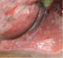*Photograph grade 3 with MD: RD with erythema, moist desquamation, and bleeding from minor trauma
