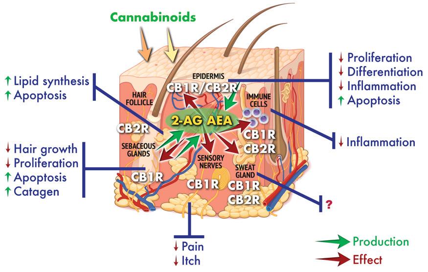 - Bíró T, Toth BI, Hasko G, et al. The endocannabinoid system of the skin in health and disease: novel perspectives and therapeutic opportunities. Trends Pharmacol Sci. 2009 Aug;30(8):411-20.