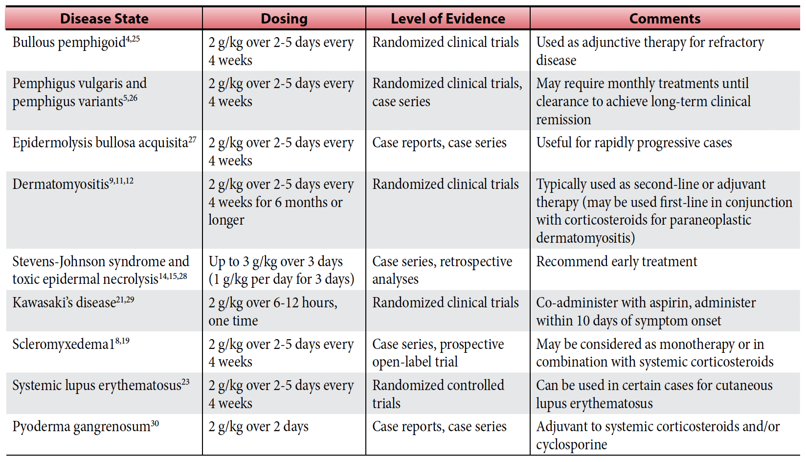 Keywords: intravenous immunoglobulin, IVIG, immunomodulation, autoimmune diseases, bullous dermatoses, dermatomyositis, Stevens-Johnson syndrome